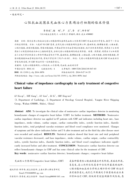 心阻抗血流圖在充血性心力衰竭治療初期的臨床價(jià)值
